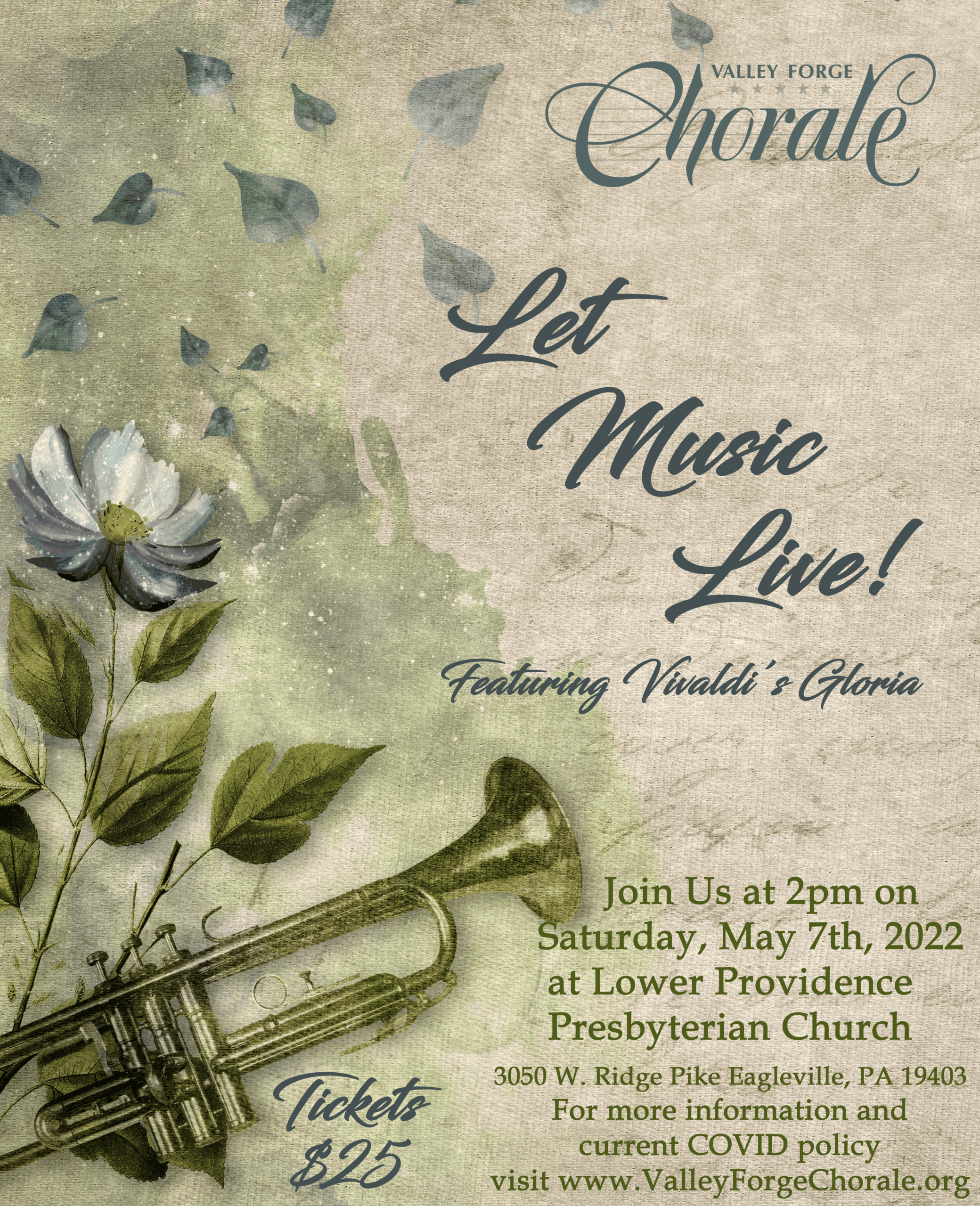 The Valley Forge Chorale is always looking for new talent to add to the exceptional group of singers. Rehearsals are Tuesday Evenings.